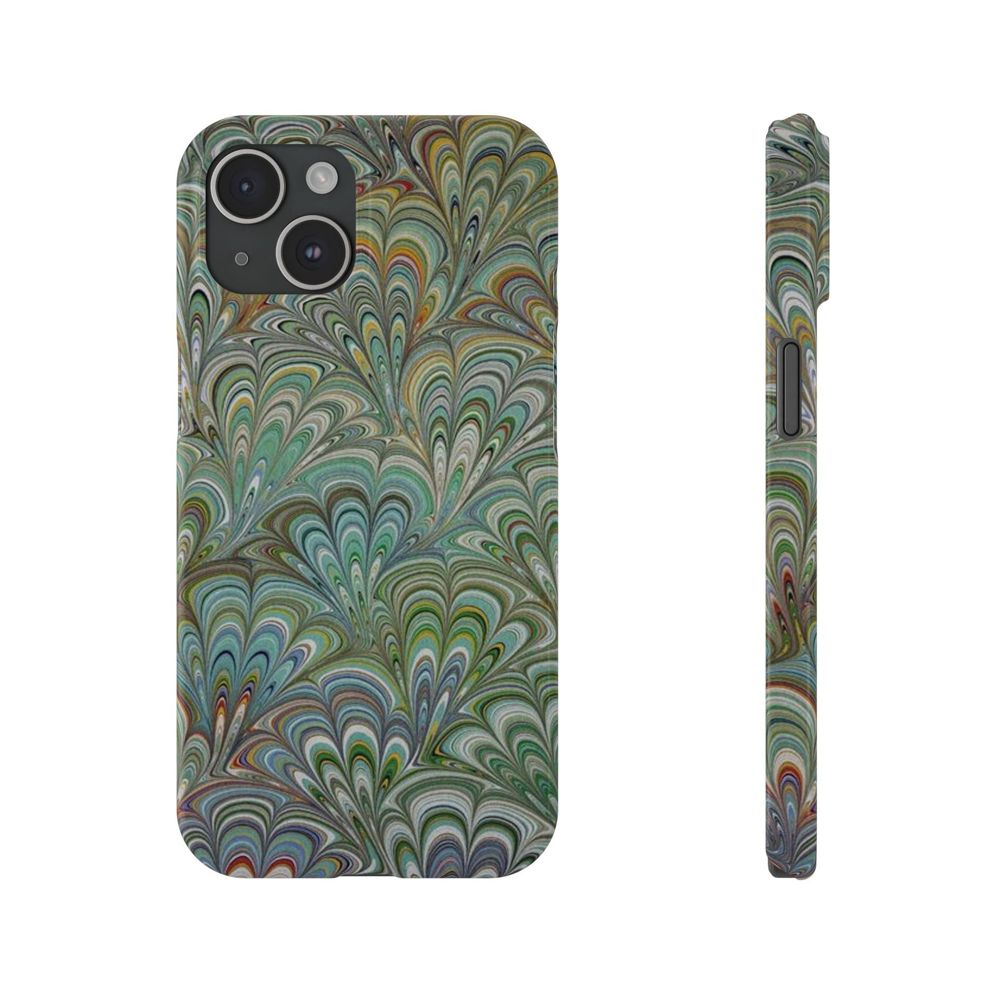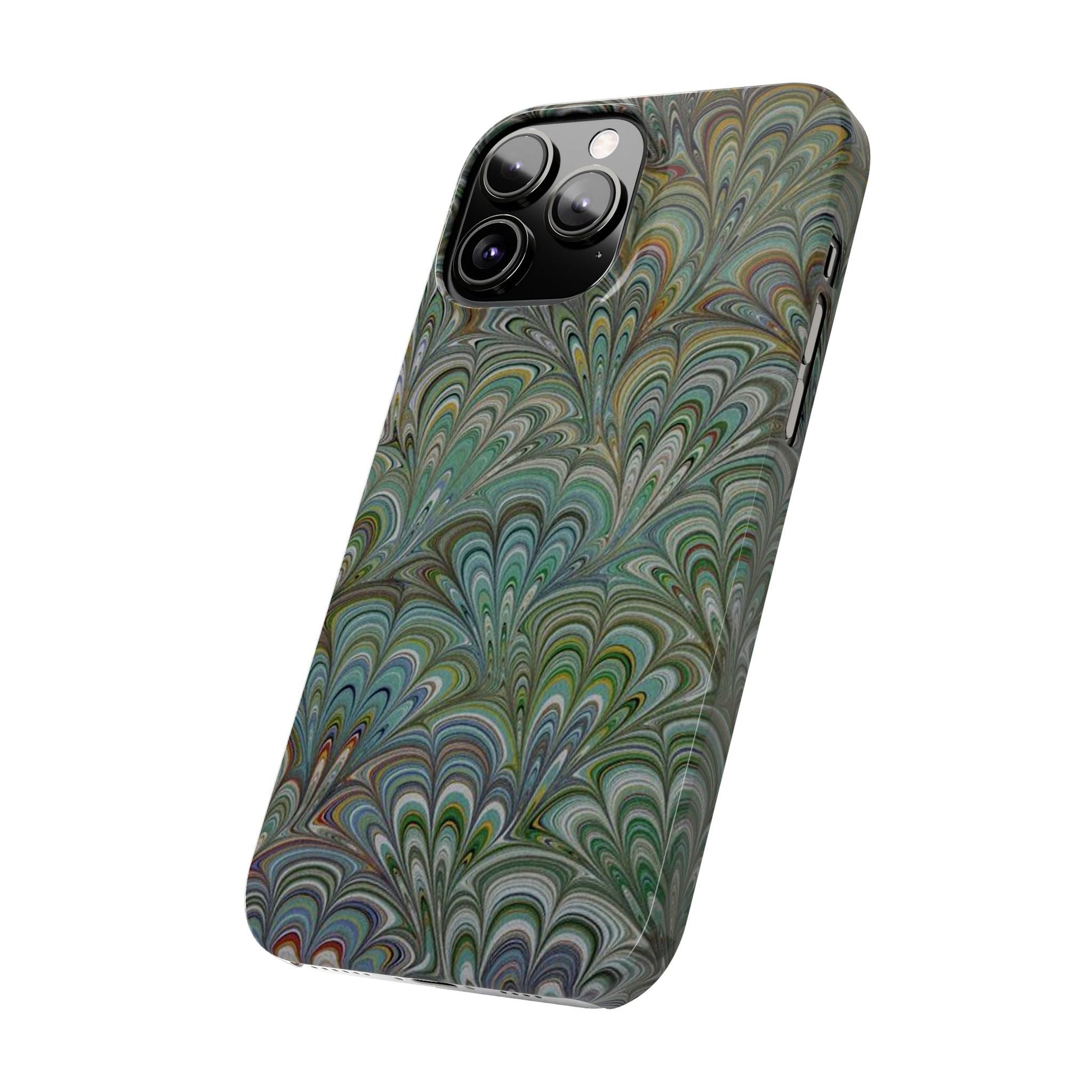 Deep Green Peacock Italian Marbled Design, Italy Feather Phone Case, Multi-Color, Slim Phone Cases, Case-Mate IPHONE16 and all sizes